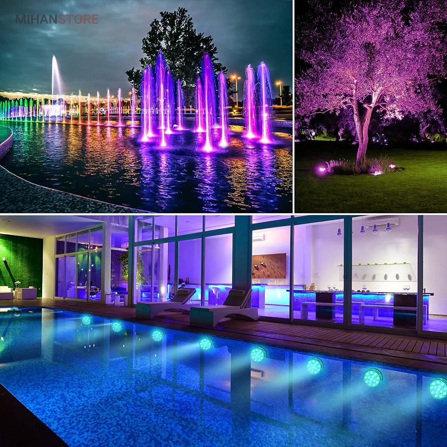 ایده آل برای استخر، وان حمام، حوض، فواره، آبشار، آکواریوم، گلدان، باغ، باغچه، عروسی، مهمانی و غیره. این محصول طراحی ضدآب بسیار قدرتمندی دارد، حلقه مهر و موم خارجی سیلیکاژل مقاوم در برابر حرارت دارای اثر ضد آب بهتری نسبت به سایر چراغ های استخر دارد، از ورود کامل آب جلوگیری می کند و عمر طولانی را تضمین می کند. نمای بیرونی ABS ضخیم شده، محافظت در برابر خوردگی و سفتی را نشان می دهد. دارای 16 رنگ، 5 سطح روشنایی، 3 حالت نور و 3 عملکرد تایمر (2 ساعت، 4 ساعت، 6 ساعت)، شما می توانید آن را به دلخواه تنظیم کنید.