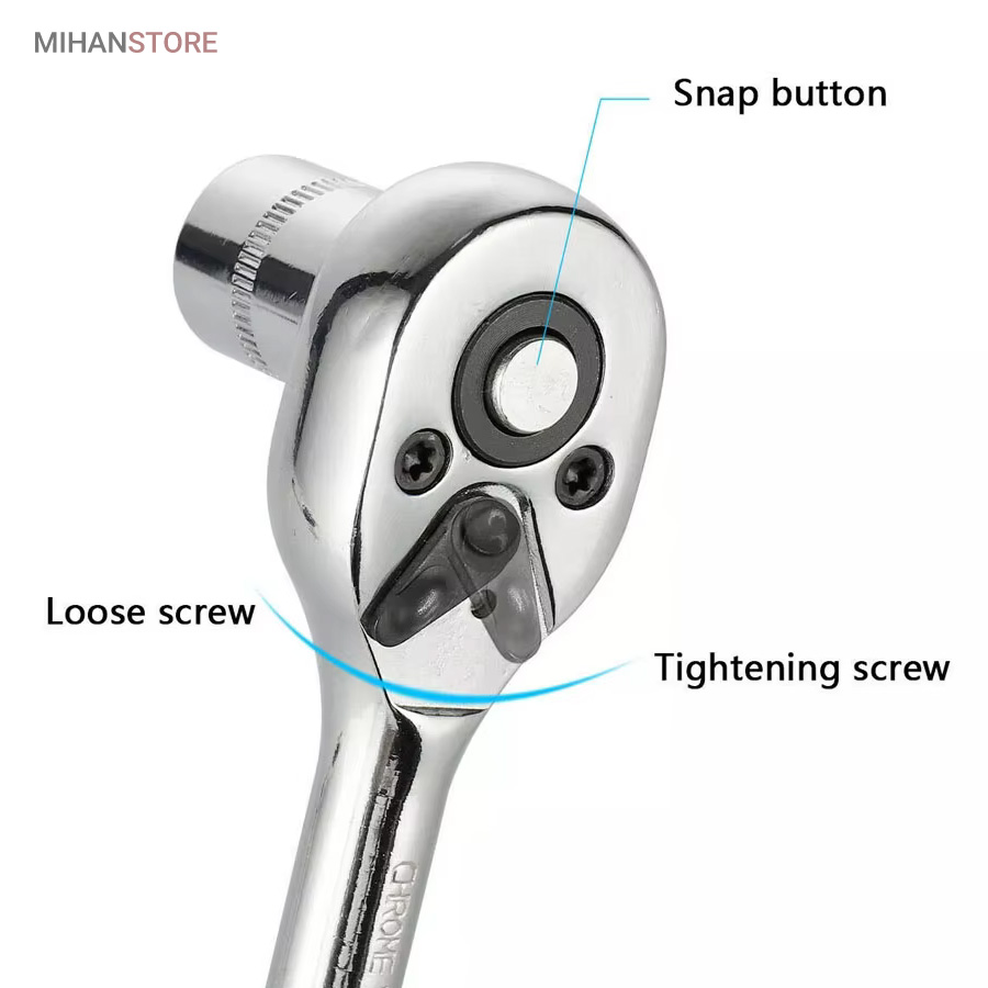 - 1 عدد آچار جغجغه‌ای به طول ۱۹ سانتی‌‎متر با درایو ۱/۴ اینچ